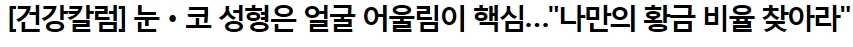 [°Ç°Ä®·³]´« ÄÚ ¼ºÇüÀº ¾ó±¼ ¾î¿ï¸²ÀÌ ÇÙ½É.."³ª¸¸ÀÇ È²±Ý ºñÀ² ã¾Æ¶ó"